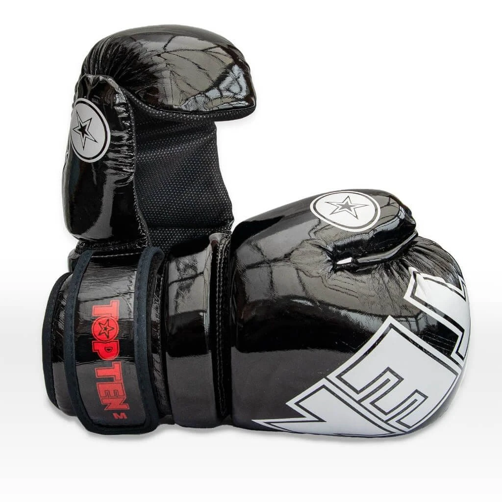 TOP TEN “Glossy Block” Pointfighter Gloves Black/White