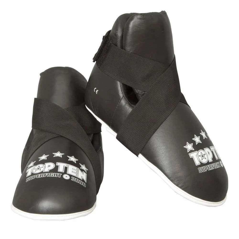 The Top Ten Superfight 3000 range have a leather finish. The inner padding is made of the super shock absorbent Bayfill® PPS foam to give you the ultimate protection against instep and ankle injuries.