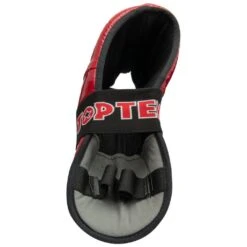 The new improved Top Ten Superlight Kicks now have replaceable straps. They come with replaceable industrial strength 2-inch-wide elastic straps with strong velcro ends, which means no more having to replace otherwise good gear just because the straps have worn out. A slightly lower cut design with a shorter tongue lightens the kick by around 10% compared to the original Top Ten Fight Kicks model and allows for a more comfortable use when wearing shin guards without reducing the protection level.