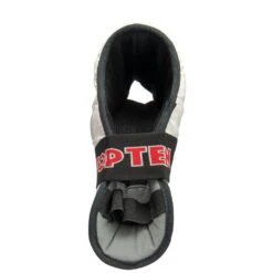 The new improved Top Ten Superlight Kicks now have replaceable straps. They come with replaceable industrial strength 2-inch-wide elastic straps with strong velcro ends, which means no more having to replace otherwise good gear just because the straps have worn out. A slightly lower cut design with a shorter tongue lightens the kick by around 10% compared to the original Top Ten Fight Kicks model and allows for a more comfortable use when wearing shin guards without reducing the protection level.